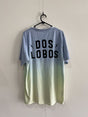 The Dos Lobos High Blue Meanie Ss T-Shirt has been hand dip-dyed by T/S/O/B/G with an indigo blue fade from the shoulders down into flouro yellow at the hem. It is constructed from 180gsm premium lycra jersey cotton. It's a crew neck with a regular fit and slightly longer length. "Dos Lobos High" logo is printed on front and rear.